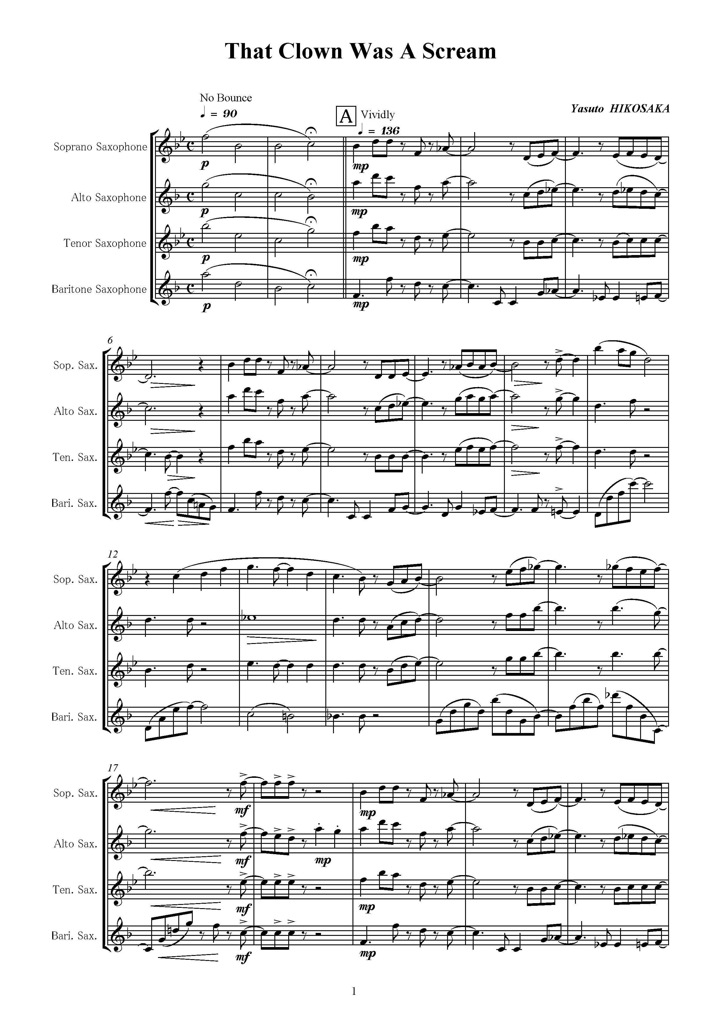 「That Clown Was A Scream」(サックス四重奏) | Hikosaka Music Shop